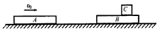 4、计算题 如图所示,A、B、C三个物体质量均为m,其中厚度相同的A、B位于光滑的水平面上,可视为质点的小物块C放在静止的B物体上,物体A以速度v0。向物体B运动,与B发生碰撞(碰撞时间极短),碰后A、B以相同的速度运动,但互不粘连;C滑过B后又在A上滑行,最后停在A上,与A一起以的速度运动。求: