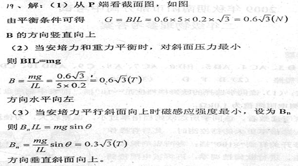 小题2:若改变匀强磁场的大小和方向,使导线静止在斜面上,且对斜面的压力最小,求该磁场的大小和方向;