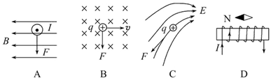 本题解析:根据左手定则,四指指向电流方向,让磁场垂直穿过手心,大拇指与四指共面,此时大拇指方向即为安培力方向,同理可以判断只有A答案正确