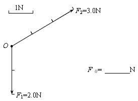 (2)图为另一同学根据自己的实验数据画出的两个分力F1、F2的图示,请在图中作出这两个分力的合力F合(保留作图痕迹),并在图中空格处填写F合的大小。