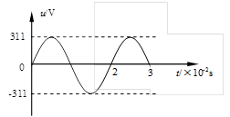 选择 题 一理想变压器原、副线圈的匝数比n1 : n2=2 : 1,原线圈两端接一正弦式交变电流,其电压u随时间t变化的规律如图所示,则副线圈两端电压的有效值和频率分别为A.110V,50HzB.110V,0.5HzC.220V,50HzD.220V,0.5Hz