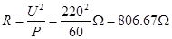 选择题 一个标有“220V 60W”的白炽灯泡,当用多用电表的欧姆挡去测量它的电阻时,其阻值