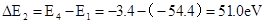 选择题 氦原子被电离一个核外电子,形成类氢结构的氦离子.已知基态的氦离子能量为E1=-54.4 eV,氦离子能级的示意图如图所示.在具有下列能量的光子中,不能被基态氦离子吸收而发生跃迁的是
