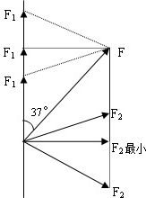 解答:解:画出力F的分解图:如右图所示:可以看出F2有最小值,最小值为:F2=F×sin37°=3N,没有最大值,所以F2的取值范围为:3N到∞.