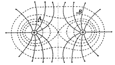 选择题 一对等量正点电荷电场的电场线(实线)和等势线(虚线)如图所示,图中A、B两点电场强度分别是EA 、EB,电势分别是ΦA、ΦB,负电荷q在A、B时的电势能分别是EPA、EPB,下列判断正确的是A.EA>EB,ΦA>ΦB,EPA< EPBB.EA>EB,ΦA<ΦB,EPA< EPBC.EA< EB,ΦA>ΦB,EPA> EPBD.EA EPB