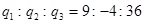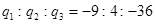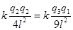 选择题  如图所示,三个点电荷q1、q2、q3固定在一直线上,q2和q3的距离为q1与q2距离的2倍,每个电荷所受静电力的合力均为零.由此可以判定,三个电荷的电量之比q1∶q2∶q3为