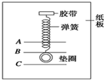 一个研究性学习小组设计了一个竖直加速度器,如图所示.把轻弹簧上端用胶带固定在一块纸板上,让其自然下垂,在弹簧末端处的纸板上刻上水平线A.现把垫圈用胶带固定在弹簧的下端,在垫圈自由垂下处刻上水平线B,在B的下方刻一水平线C,使AB间距等于BC间距.假定当地重力加速度g=10m/s2,当加 速度器在竖直方向运动时,下列说法错误的是