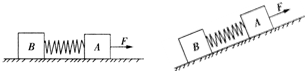 选择题 如图所示,A、B?两物体之间用轻质弹簧连接,用水平恒力?F?拉?A,使?A、B?一起沿水平面做匀加速运动,这时弹簧长度为?L?1,若将?A、B?置于斜面上,用相同的沿斜面方向的恒力?F?拉?A,使?A、B?一起沿斜面做匀加速运动,此时弹簧的长度为?L?2,则?A.L?2=L?1B.L?2>L?1C.L2<L1D.由于A、B的质量关系未知,故无法确定L1、 91ExAm.orgL2的大小关系