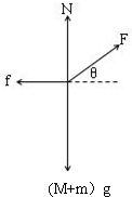 解答:以整体为研究对象,分析受力情况:总重力(M+m)g、地面的支持力N和摩擦力f、拉力F.由于F有水平向右的分力,则由平衡条件可知:f一定水平向左.