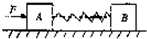选择题 如图所示,质量相同的木块A、B由轻弹簧连接且静止于光滑水平面上,开始弹簧处于原长位置,现用水平恒力推木块A,则弹簧在第一次被 压缩到最短时A.速度υA>υB,加速度aA=aBB.速度υA>υB,加速度aA>aBC.速度υA=υB,加速度aA<aBD.速度υA=υB,加速度aA=aB.