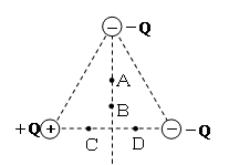 选择题 三个等量点电来源:www.91exam.org荷位于等边三角形的三个顶点,电性如图所示,A、B是底边中垂线上的两点,C、D两点在底边上,且与中垂线等距。用EC、ED表示C、D两点场强的大小,用φA、φB表示A、B两点的电势,则A.EC=ED? φA<φBB.ECφBC.EC>ED? φA>φBD.EC>ED? φA<φB