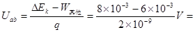 选择题 一个带正电的质点,电量q=2.0×10-9 ?C,在静电场中由a点移到b点,在这过程中,除电场力外,其他力做的功为6.0×10-5?J,质点的 动能增加了8.0×10-5?J,则a、b两点间的电势差Uab为