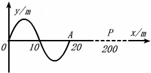 3、填空题 如图所示,一列沿+x方向传播的波,波速为100m/s,当t1=0时,振动只传播到A点,当t2=______s时,位于x=200m的P点第一次出现波峰,当t3______s时,P点第一次出现波谷.