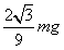 5、选择题 如图所示,置于水平地面的三脚架上固定着一质量为m的照相机,三脚架的三根轻质支架等长,与竖直方向均成30。角,则每根支架中承受的压力大小为( ? )