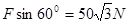 4、填空题 (4分) 已知一个力F=100N,把它分解为两个力,已知其中一个分力F1与F的夹角为600,则另一个分力F2的最小值为?。