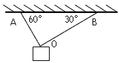3、计算题 如图所示,物体用两条细绳悬挂处于静止状态,若已知OB绳中的拉力为15N,试求AO绳中的拉力和物体的重力。