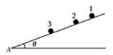 3、选择题 如右图所示,在光滑的斜面上放置3个相同的小球(可视为质点),小球1、2、3距斜面底端A点的距离分别为x1、x2、x3,现将它们分别从静止释放,到达A点的时间分别为t1、t2、t3,斜面的倾角为θ.则下列说法正确的是( )
