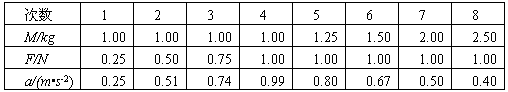 该同学通过在小车上加减砝码改变小车的总质量M ,通过在盘中增减砝码改变小车所受的合力F,研究纸带算出小车运动的加速度a,几次实验数据记录如下表:
