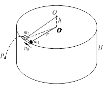 5、计算题 如图所示,在水平地面上有一高H=0.8m、半径r=0.6m的光滑水平圆台,在圆台正中央的O点用长为0.6m的轻绳系着一个质量m1=0.03kg的小球,在O点正上方高h=0.06m的O’点 用轻绳系着一个质量为m2=0.02kg的物块,绳子伸直时,物块正好静止在圆台边缘。现沿圆周切线方向给小球v0=8m/s的初速度,小球与物块碰撞后以v1=2m/s的速度继续前进,忽略空气阻力以及小球和物块的大小,g=10m/s2