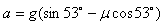 1、计算题  如图所示,滑板运动员从倾角为53°的斜坡顶端滑下,滑下的过程中他突然发现在斜面底端有一个高h=1.4m、宽L=1.2m的长方体障碍物,为了不触及这个障碍物,他必须距水平地面高度H=3.2m的A点沿水平方向跳起离开斜面。已知运动员的滑板与斜面间的动摩擦因数μ=0.1,忽略空气阻力,重力加速度g取10m/s2。(已知sin53°=0.8,cos53°=0.6)求: