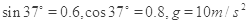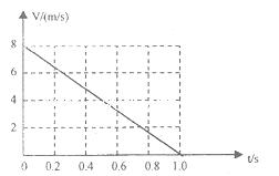 4、计算题  (8分)、一质量m=2.Okg的小物块以一定的初速度冲上一个足够长的倾角为 的固定斜面,某同学利用传感器测出了小物块冲上斜面过程中多个时刻的瞬时速度,并用计算机做出了小物块上滑过程的速度一时间图线,如图所示。(取