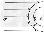 的半球形空心球壳,一束平行光射向此半球的外表面,与中心对称轴OO"平行。试求:球壳内部有光线射出的区域。