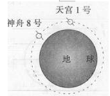 5、选择题 2011年I1月3日,我国科技工作者成功的使“神舟8号”飞船与“天宫1号”在太空实现交会对接。对接前,为对这两个航天器的关键状态进行监视和判断,某段时间内让它们在同一圆形轨道上同方向运行,如图所示。为了拉近两者间的距离,对“神舟8号”还要不断的变轨。以下说法正确的是(?)