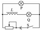 4、选择题 如图所示电路中,P、Q两灯相同,线圈L的直流电阻不计,则( )