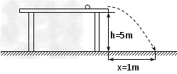 4、计算题  一小球在高5m的水平桌面上滚动,离开桌面后着地,着地点与桌边水平距离为1m,求: