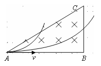 4、选择题  匀强磁场的边界为直角三角形ABC,一束带正电的粒子以不同的速率沿AB从A处射入磁场,不计粒子的重力。则 (?)