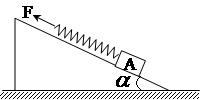 4、选择题 如图,倾角为的斜面体放在粗糙的水平面上,质量为m的物体A与一劲度系数为k的轻弹簧相连.现用拉力F沿斜面向上拉弹簧,使物体A在光滑斜面上匀速上滑,上滑的高度为h,斜面体始终处于静止状态。在这一过程中