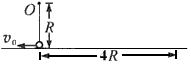 4、计算题 如图所示,长为R的轻绳,上端固定在O点,下端连接一只小球。小球接近地面,处于静止状态。现给小球一沿水平方向的初速度,小球开始在竖直平面内做圆周运动。设小球到达最高点时绳突然断开,已知小球最后落在离小球最初位置4R的地面上,重力加速度为g。试求:(图中所标v0的数值未知)