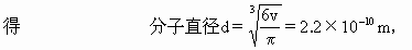 由于固体分子之间的空隙很小,我们可以认为组成金刚石的碳原子是一个挨着一个紧密排列的,因此,每个碳原子所占的体积为