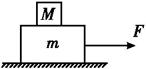 5、计算题 (14分)如图所示,当水平拉力为F="40" N时,质量为m="10" kg的木板可以在水平面上匀速前进.若在木板上再放一个质量为M的铁块,为使它们匀速前进,需加的水平拉力为60 N,求铁块的质量M。(取g="10" N/kg)