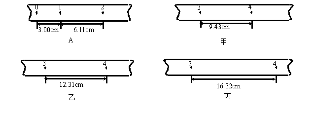 (3)某同学在测定匀变速直线运动的加速度时,得到了在不同拉力下的A、B、C、D……等几条较为理想的纸带,并在纸带上每5个点取一个计数点,即相邻两计数点间的时间间隔为0.1s,将每条纸带上的计数点都记为0、1、2、3、4、5……,如图所示甲、乙、丙三段纸带,分别是从三条不同纸带上撕下的.