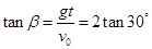 4、简答题 如图,AB为斜面,倾角为30°,小球从A点以初速度v0水平抛出,恰好落到B点.求:?
