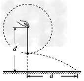 4、计算题 小明站在水平地面上,手握不可伸长的轻绳一端,绳的另一端系有质量为m的小球,甩动手腕,使球在竖直平面内做圆周运动。当球某次运动到最低点时,绳恰好断掉,球飞行水平距离d后落地。如图所示。已知握绳的手离地面高度为d,手与球之间的绳长为