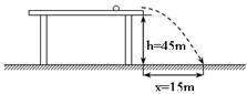 1、计算题  (8分)一小球在高45m的水平桌面上滚动,离开桌面后着地,着地点与桌边水平距离为15m,求: