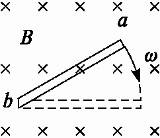 4、简答题 长为L的金属棒ab,绕b端在垂直于匀强磁场的平面内以角速度ω匀速转动,磁感应强度为B,如图1所示.求ab两端的电势差.?