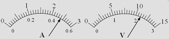 (2)设实验中,电流表、电压表的某组示数如下图所示,图示中I=        A,U=        V。