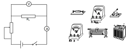 (3)测量待测金属导线的电阻Rx的电路如下图所示,根据电路图将下图中给定的器材连成实验电路。