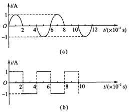 3、填空题 如图所示,图(a)和图(b)分别表示正弦脉冲波和方波的交变电流与时间的变化关系。若使这两种电流分别通过两个完全相同的电阻,则经过1 min的时间,两电阻消耗的电功之比W甲:W乙为____。