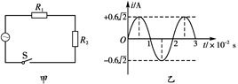 5、选择题 电阻R1、R2与交流电源按照如图甲所示方式连接,R1=10 Ω,R2=20 Ω.合上开关S后,通过电阻R2的正弦交变电流i随时间t变化的情况如图乙所示.则 ( ).