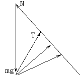 本题解析:球受到三个力的作用,而处于动态平衡状态,其中重力的大小和方向不变,斜面对它的弹力的方向不变,绳子对它的弹力方向时刻沿着绳子方向,根据三角形法则,可知绳子上的弹力线减小后增大,选项C正确。