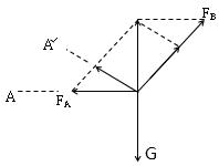 本题解析:由于电灯的重力是一定的,灯平衡时,电线OA、OB的拉力的合力与灯的重力大小相等,如图所示,我们将OB平衡至DC的位置,构成力的矢量三角形,可以看出,当DC与OA间的夹角为90°时,OB上的拉力最小,其他的方向如虚线所示,所用的力都比较大,故该题选D。