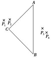 3、实验题 用三棱镜做测定玻璃折射率的实验,先在白纸上放好三棱镜,在棱镜的一侧插上两枚大头针P1和P2,然后在棱镜的另一侧观察,调整视线使P1的像被P2挡住.接着在眼睛所在的一侧插两枚大头针P3、P4,使P3挡住P1、P2的像,P4挡住P3、P1和P2的像,在纸上标出大头针的位置和三棱镜的轮廓如图所示.