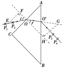 (1)如图所示,画出过P1、P2的入射光线交AC面于O,画出通过P3、P4的出射光线交AB面于O′,则光线OO′为在三棱镜中的折射光线.