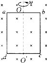 5、简答题 如图所示,矩形线圈可以围绕00"轴转动,匀强磁场的磁感应强度是O.2T,金属线框边长Lab=O.1m,Lbc=O.2m.试求: