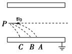 1、选择题 将带正电、负电和不带电的三个等质量小球,分别以相同的水平速度由P点射入水平放置的平行金属板间,已知上板带负电,下板接地.三小球分别落在图中A、B、C三点,则下列说法中错误的是(? )