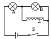3、选择题 如图所示电路中,L为电感线圈,电阻不计,A、B为两灯泡,则